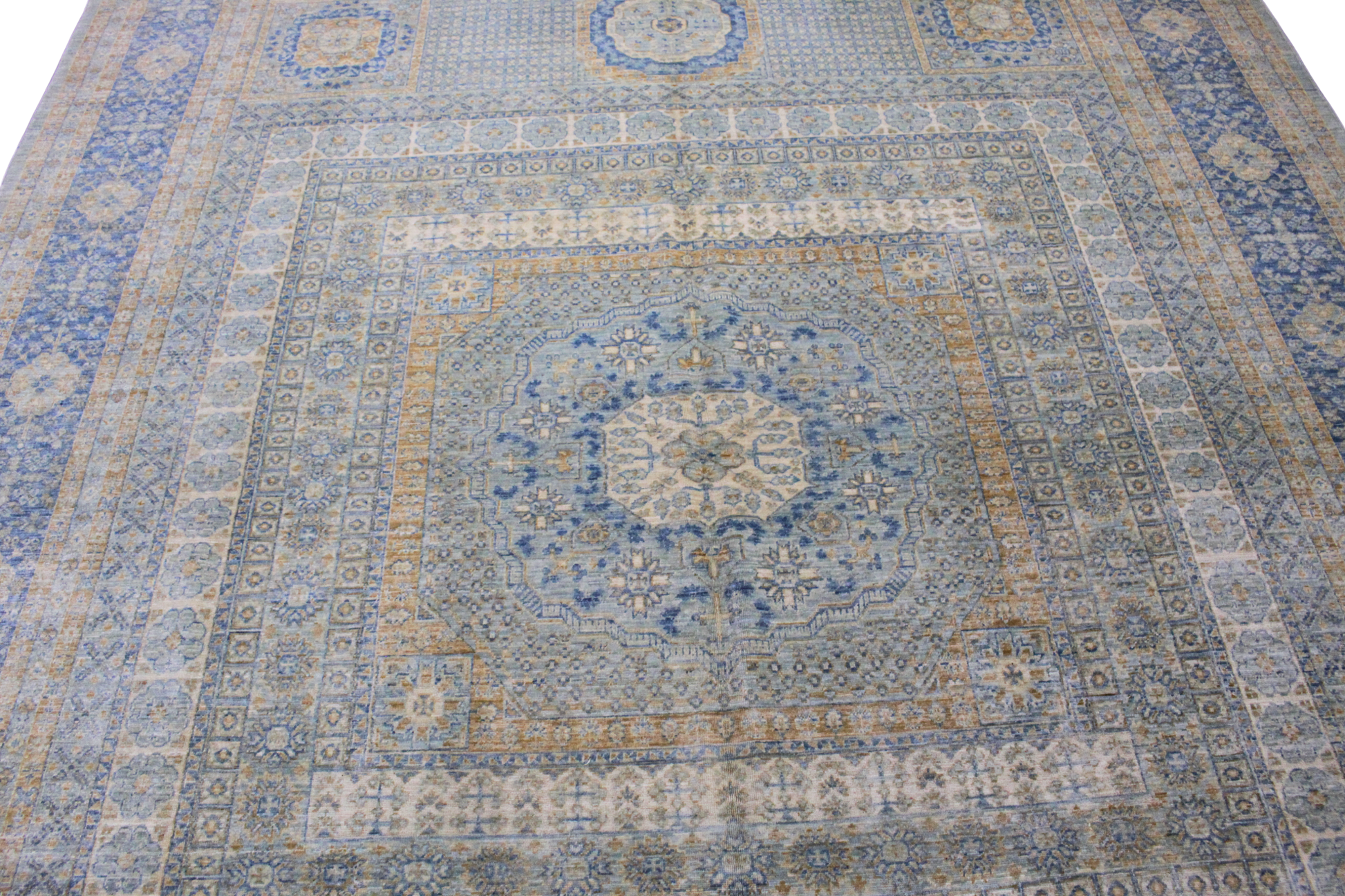 Whispered Geometry — Fine Afghan Rug in Powder Blue and Ivory (8.10 × 11.9 ft)